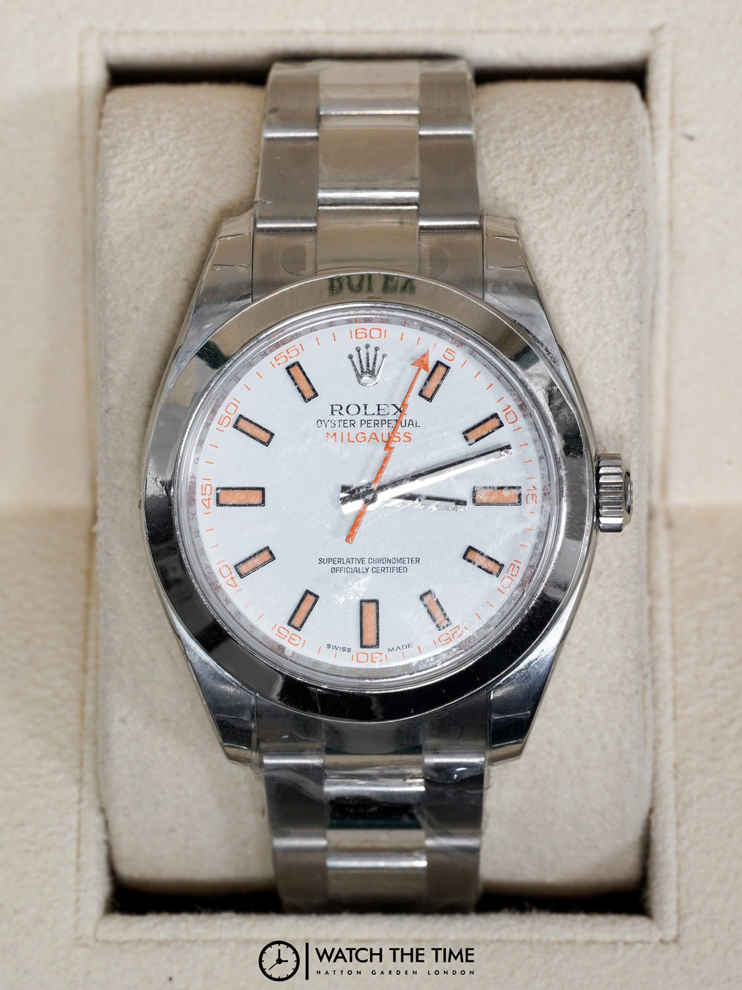 Experience the fusion of science and style with our Milgauss collection, featuring pre-owned Rolex watches designed for the scientific community. Known for its resistance, the Milgauss is engineered to withstand high magnetic fields, making it a symbol of durability and innovation. Each watch in Watch the Time's collection is authenticated to ensure its quality and functionality. Ideal for professionals in scientific fields or those who appreciate a watch with unique capabilities, the Milgauss offers a distinct blend of technical mastery and aesthetic appeal.