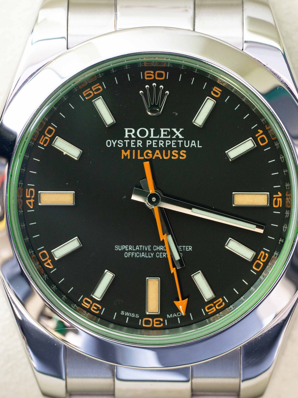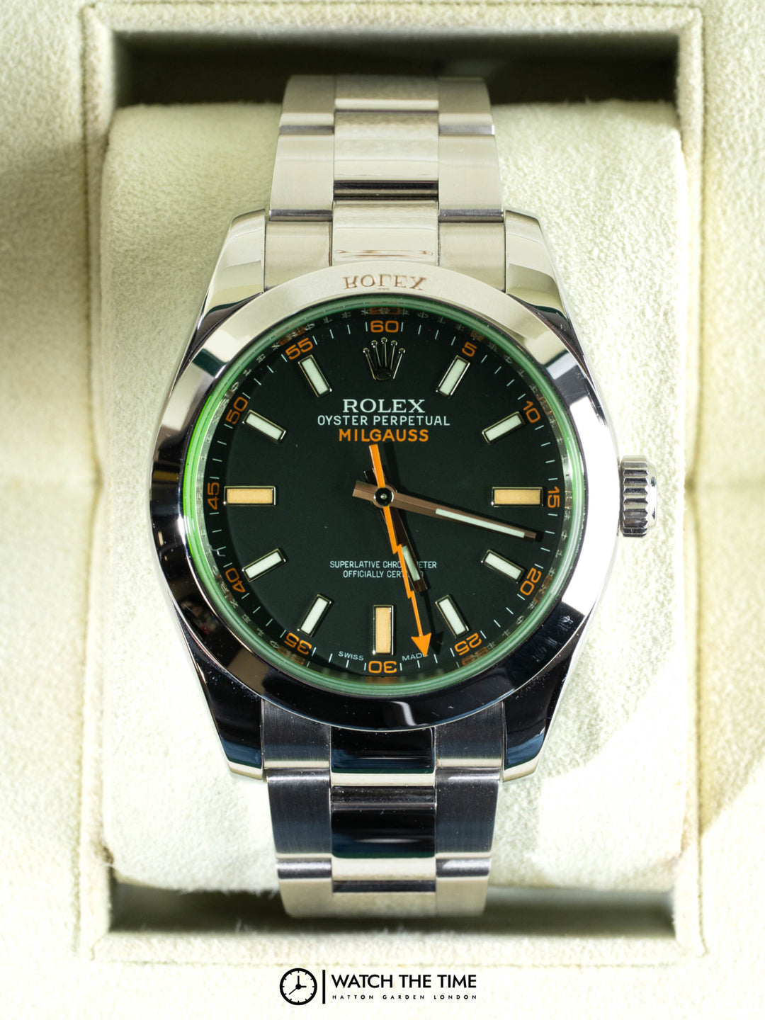 Experience the fusion of science and style with our Milgauss collection, featuring pre-owned Rolex watches designed for the scientific community. Known for its resistance, the Milgauss is engineered to withstand high magnetic fields, making it a symbol of durability and innovation. Each watch in Watch the Time's collection is authenticated to ensure its quality and functionality. Ideal for professionals in scientific fields or those who appreciate a watch with unique capabilities, the Milgauss offers a distinct blend of technical mastery and aesthetic appeal.