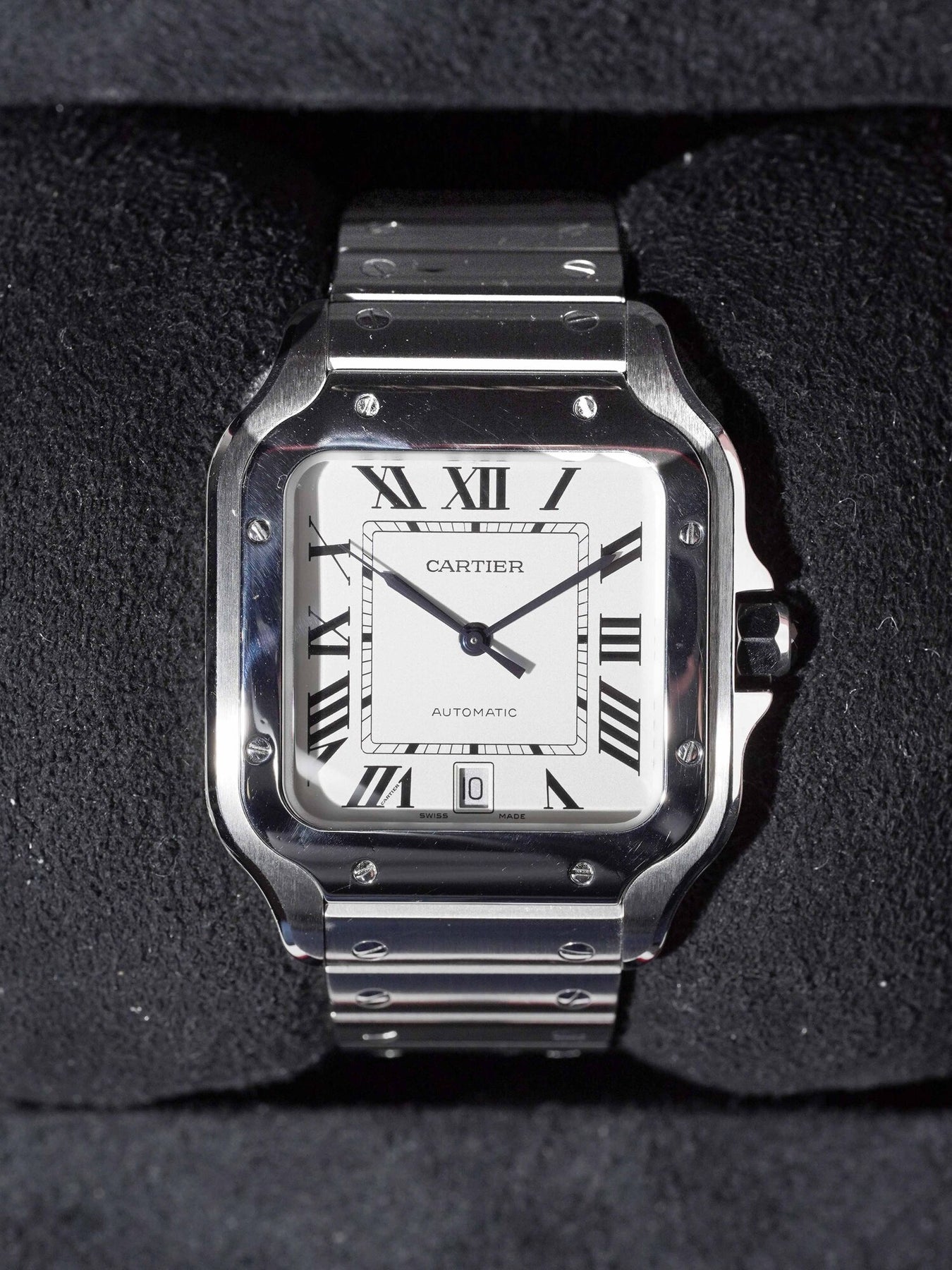 Pre-Owned Santos De Cartier WSSA0018 White Dial 39.8mm - 2024.