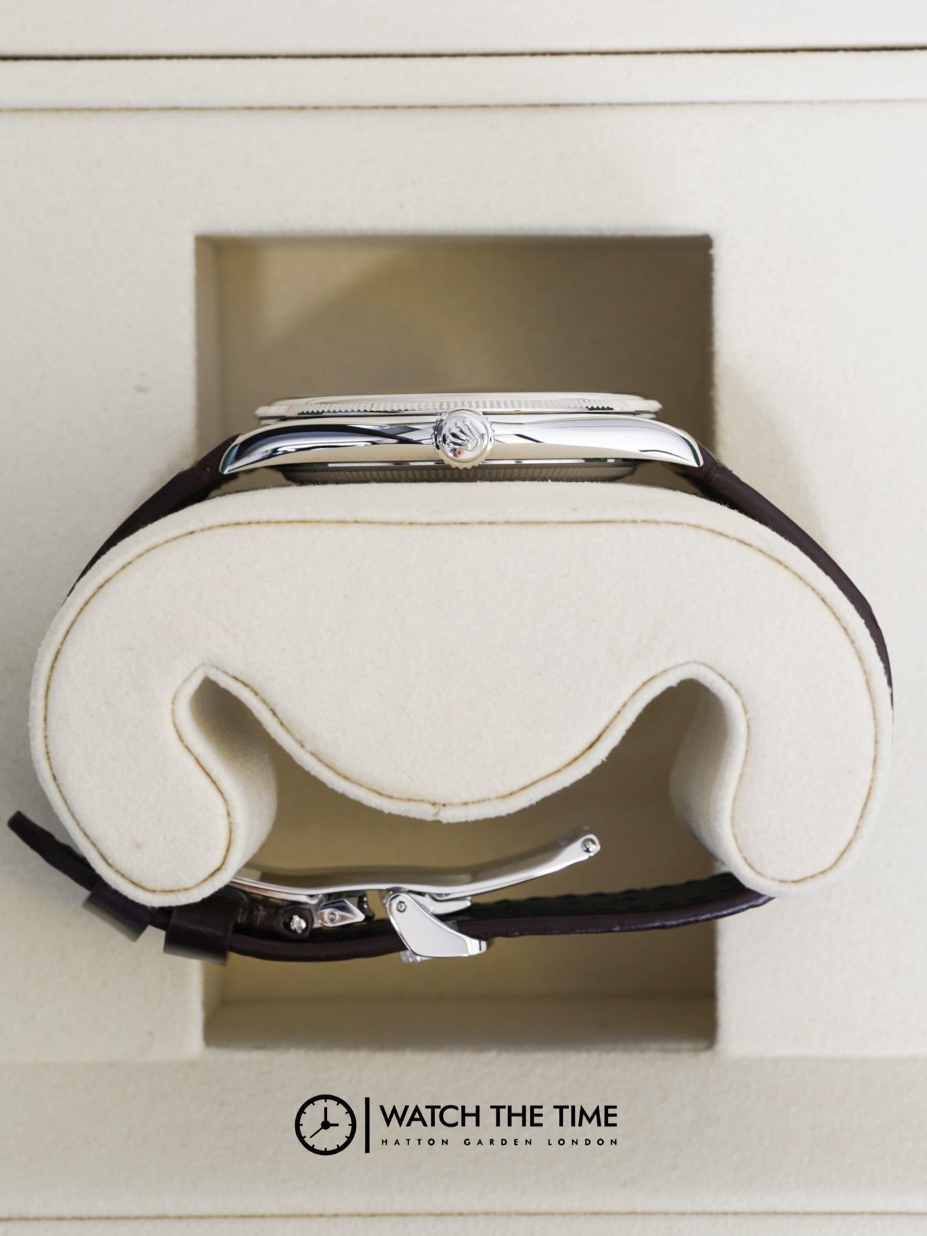 Pre-Owned Rolex 52506 Platinum 1908 Brown Alligator Leather Strap - 2025.