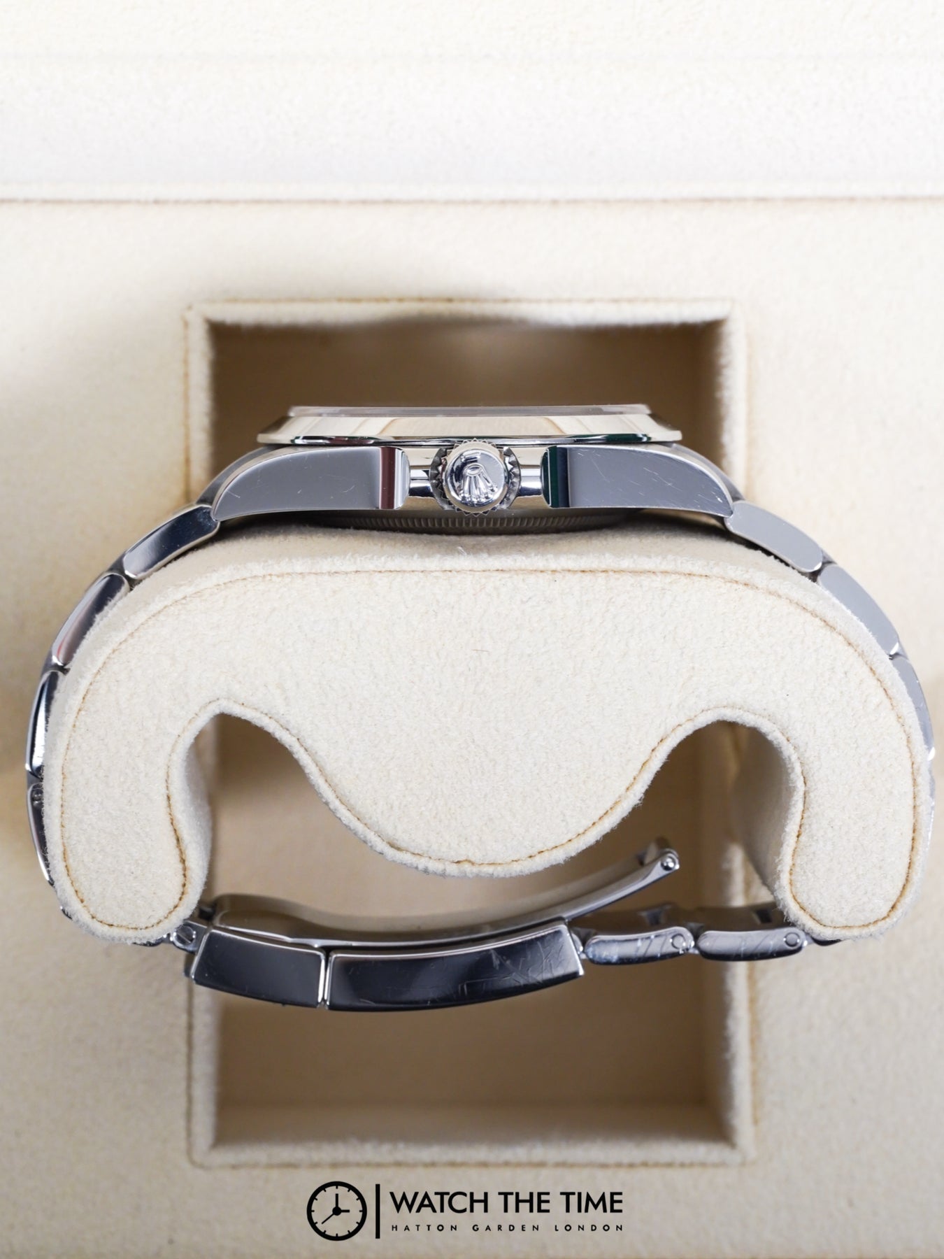 40mm stainless steel case, smooth bezel, crown set on the right side of the watch, stainless steel oyster bracelet.
