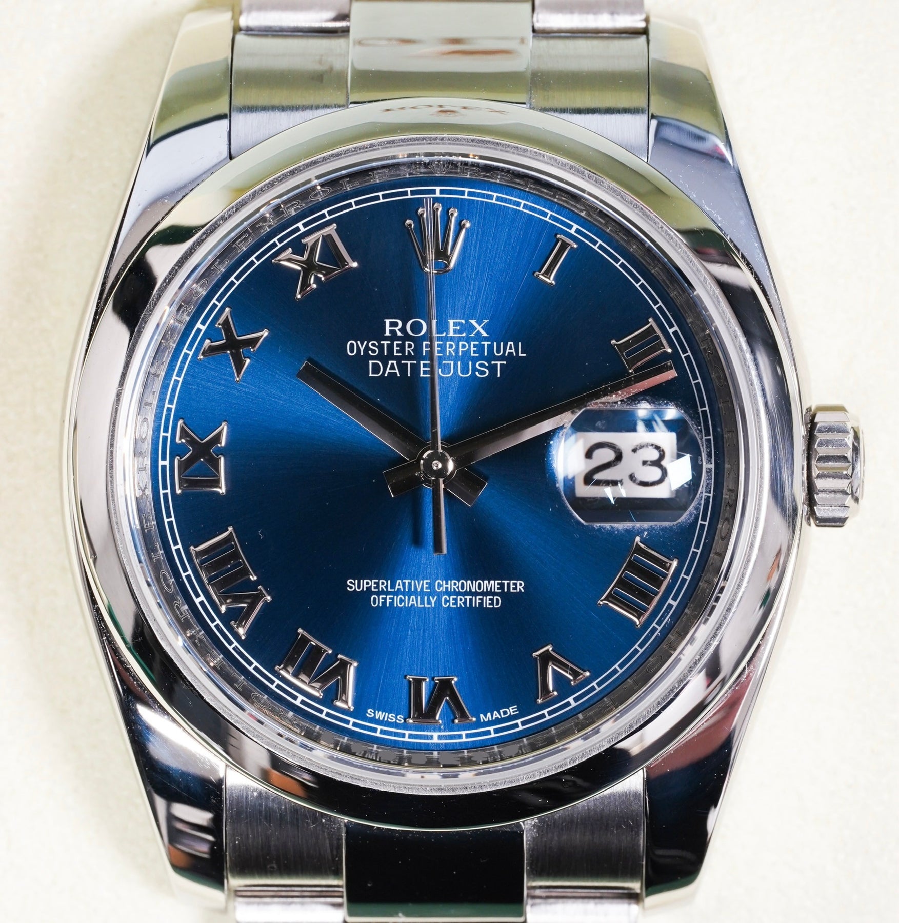 Pre-Owned Rolex Datejust 116200 Blue Roman 36 Stainless Steel - Unknown.