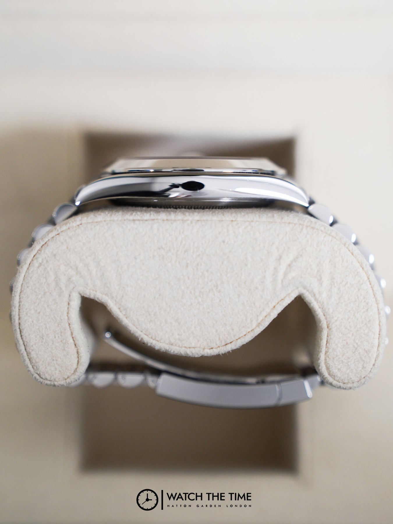 41mm Stainless Steel Case, Smooth Bezel, Crown Set On The Right Side As Well As The Date. Independent 12 hour Hand, Rhodium Dial, Stainless Steel Oyster Bracelet.