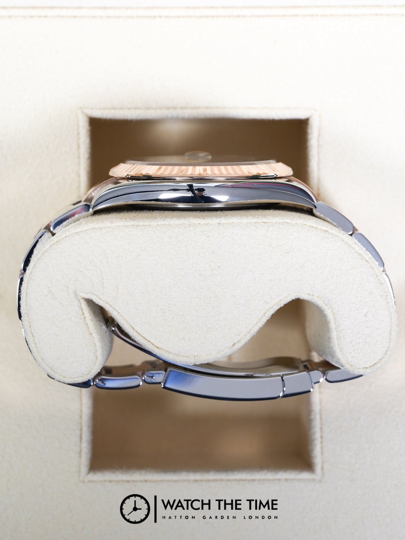 41mm Stainless Steel & Rose Gold Case, Fluted Bezel, Crown Set On The Right Side As Well As The Date. Wimbledon Dial, Stainless Steel & Rose Gold Oyster Bracelet.