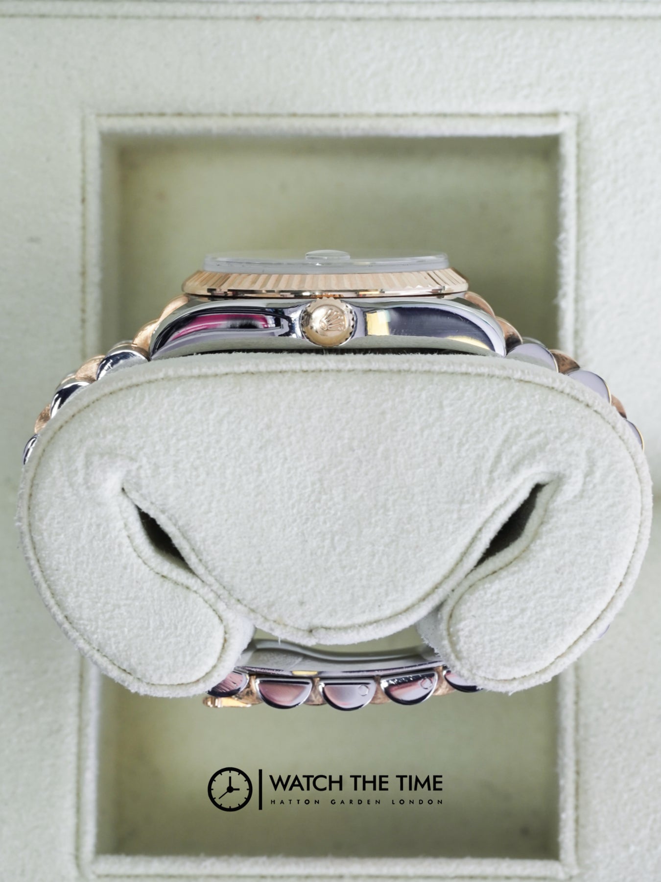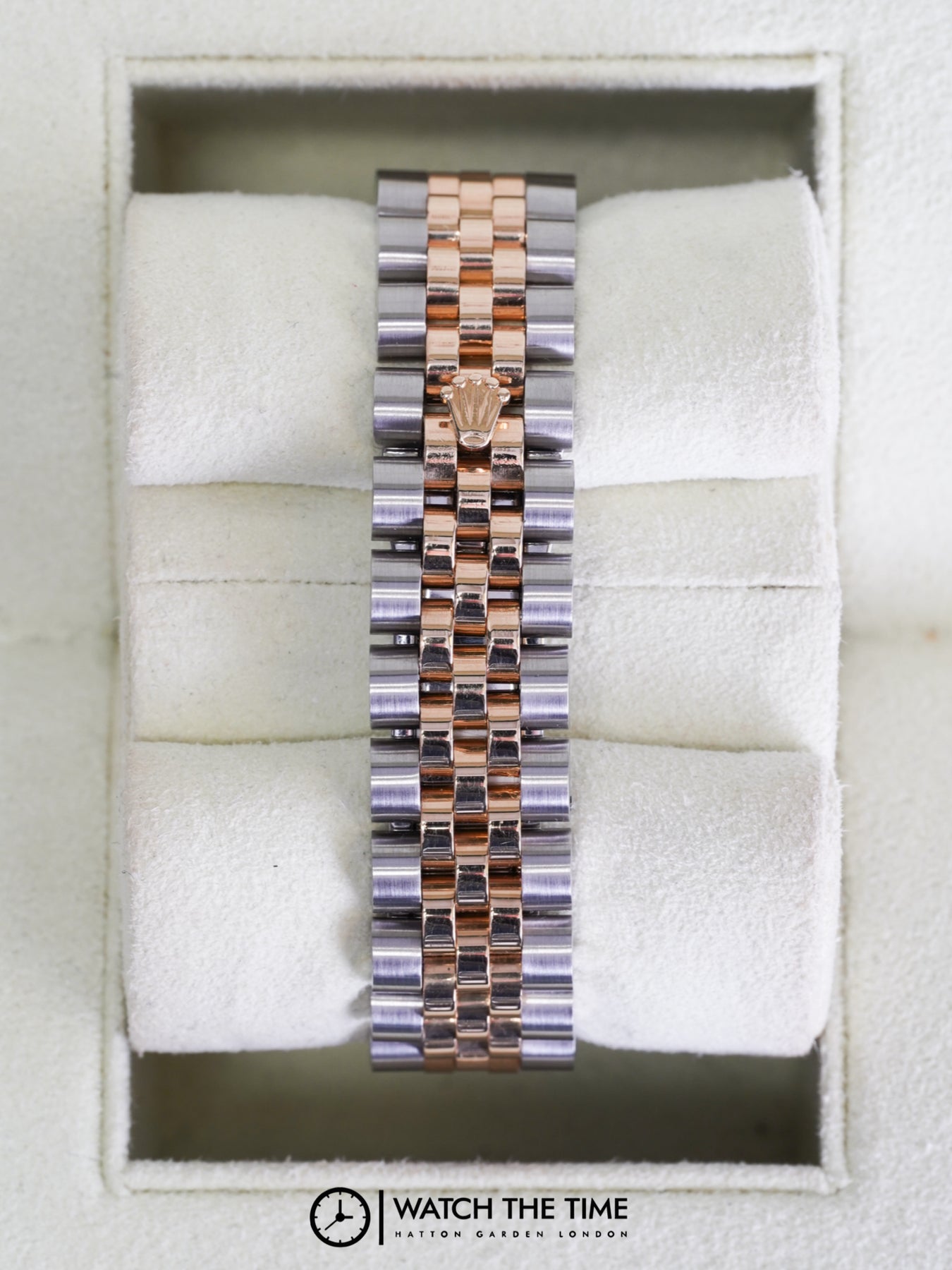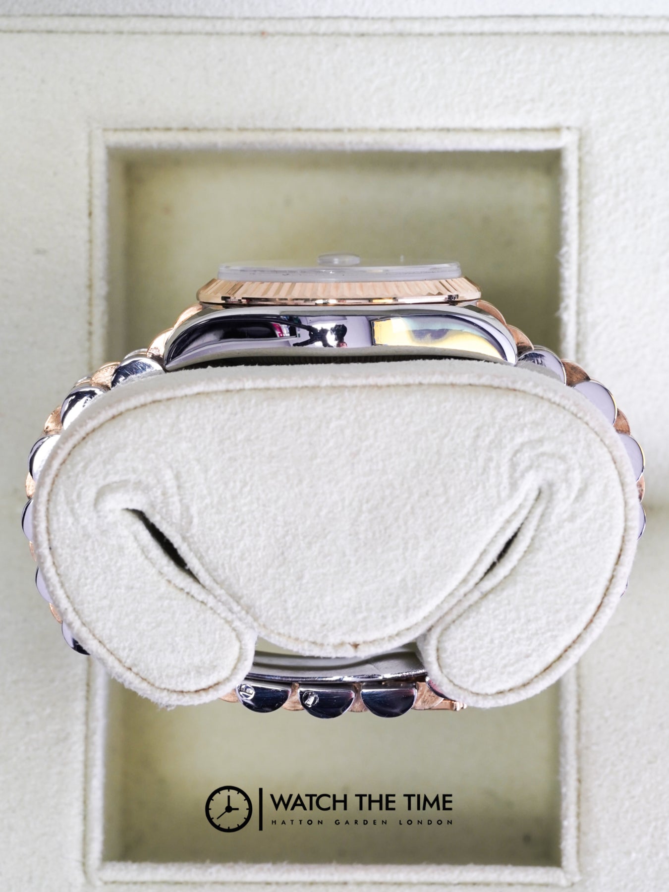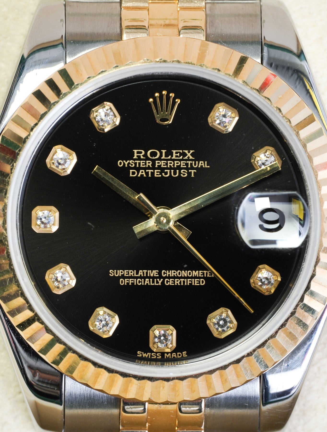 31mm stainless steel & yellow gold case, yellow gold fluted bezel. Crown set on the right side of the watch as well as the date. Black diamond dial, stainless steel & yellow gold jubilee bracelet.