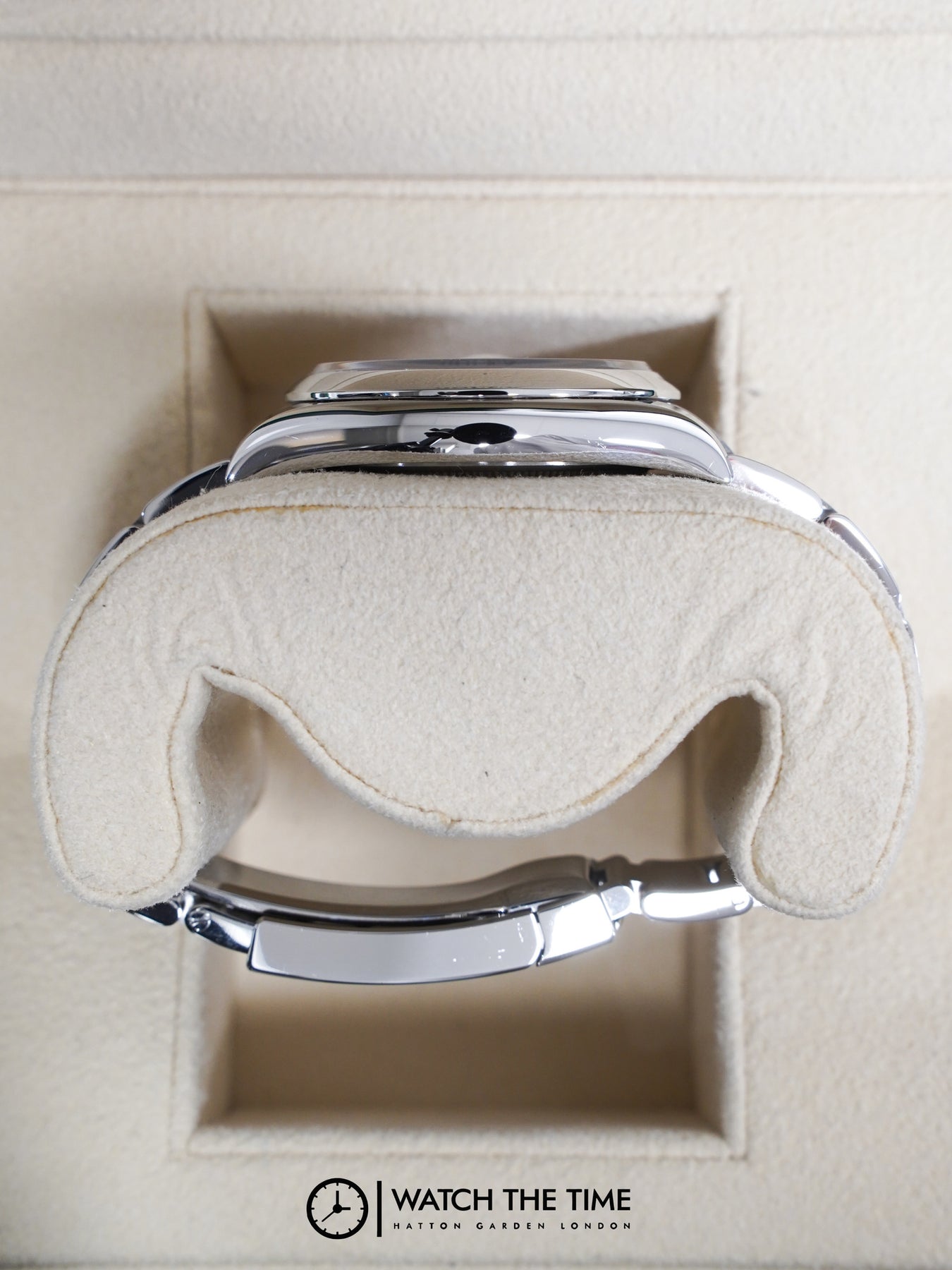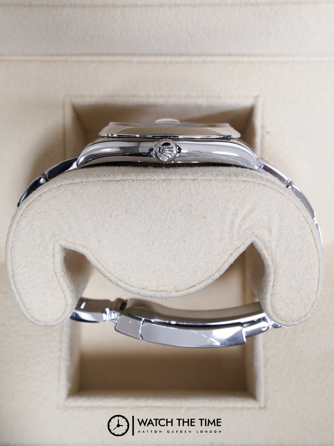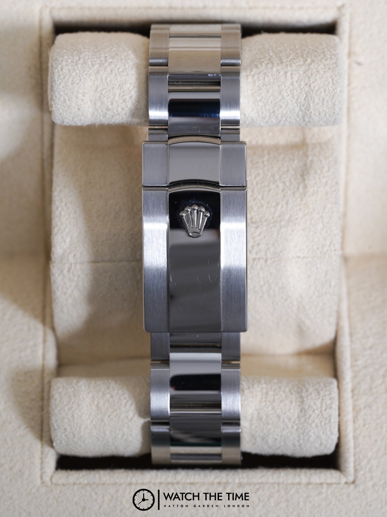 36mm Stainless Steel Case, Smooth Bezel, Crown Set On The Right Side As Well As The Date. Independent 12 hour Hand, Blue Dial, Stainless Steel Oyster Bracelet.
