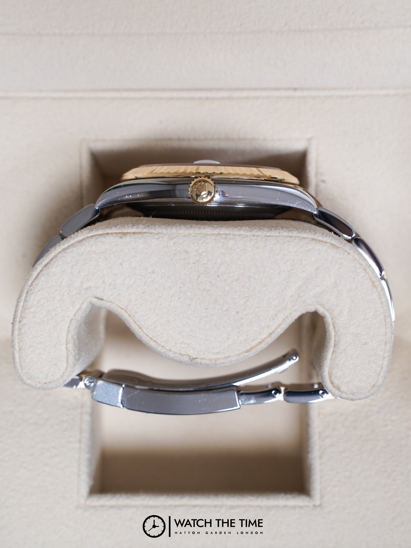 41mm Stainless Steel & Yellow Gold Case, Fluted Bezel, Crown Set On The Right Side As Well As The Date. Independent 12 hour Hand, White Dial, Stainless Steel & Yellow Gold Oyster Bracelet.
