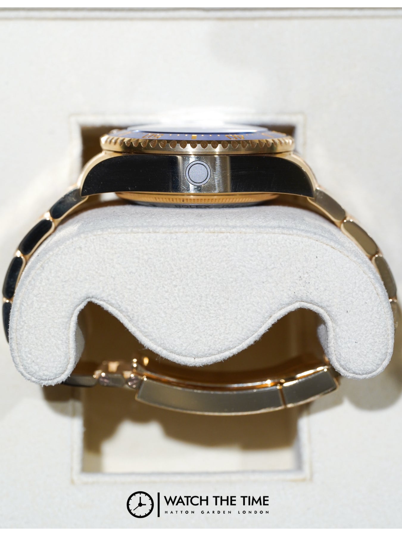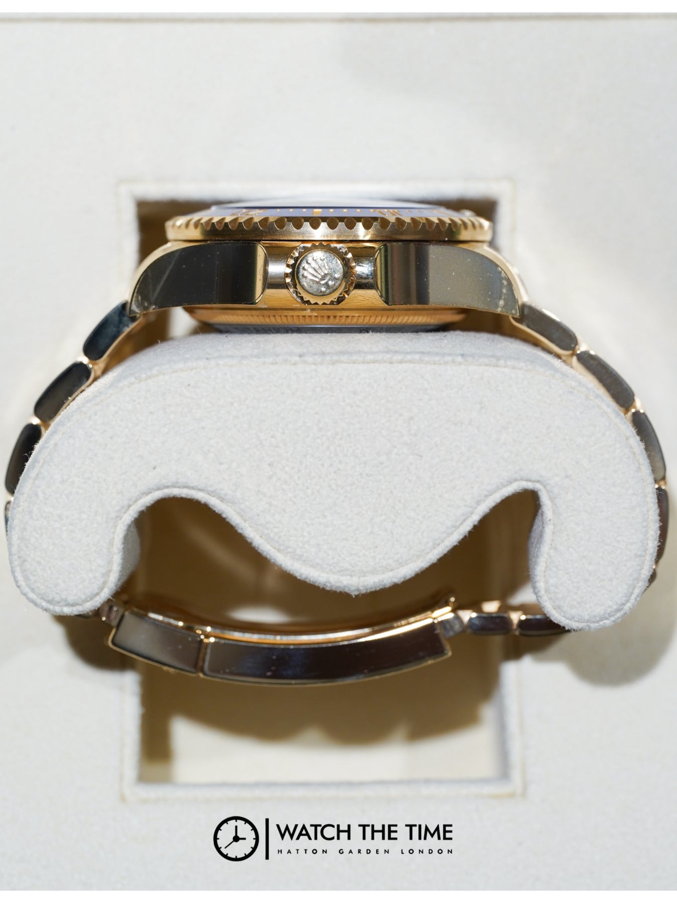 44mm Yellow Gold Case, Blue Ceramic Bezel, Crown Set On The Right Side Of The Watch As Well As The Date. Blue Dial, Yellow Gold Oyster Bracelet.