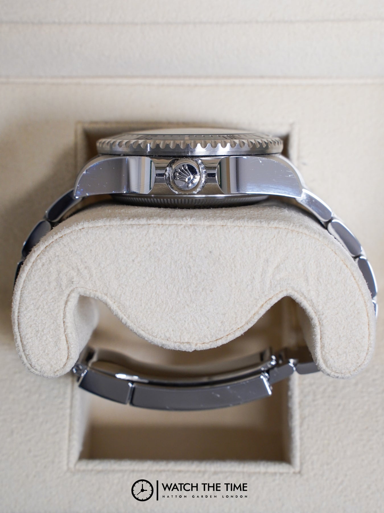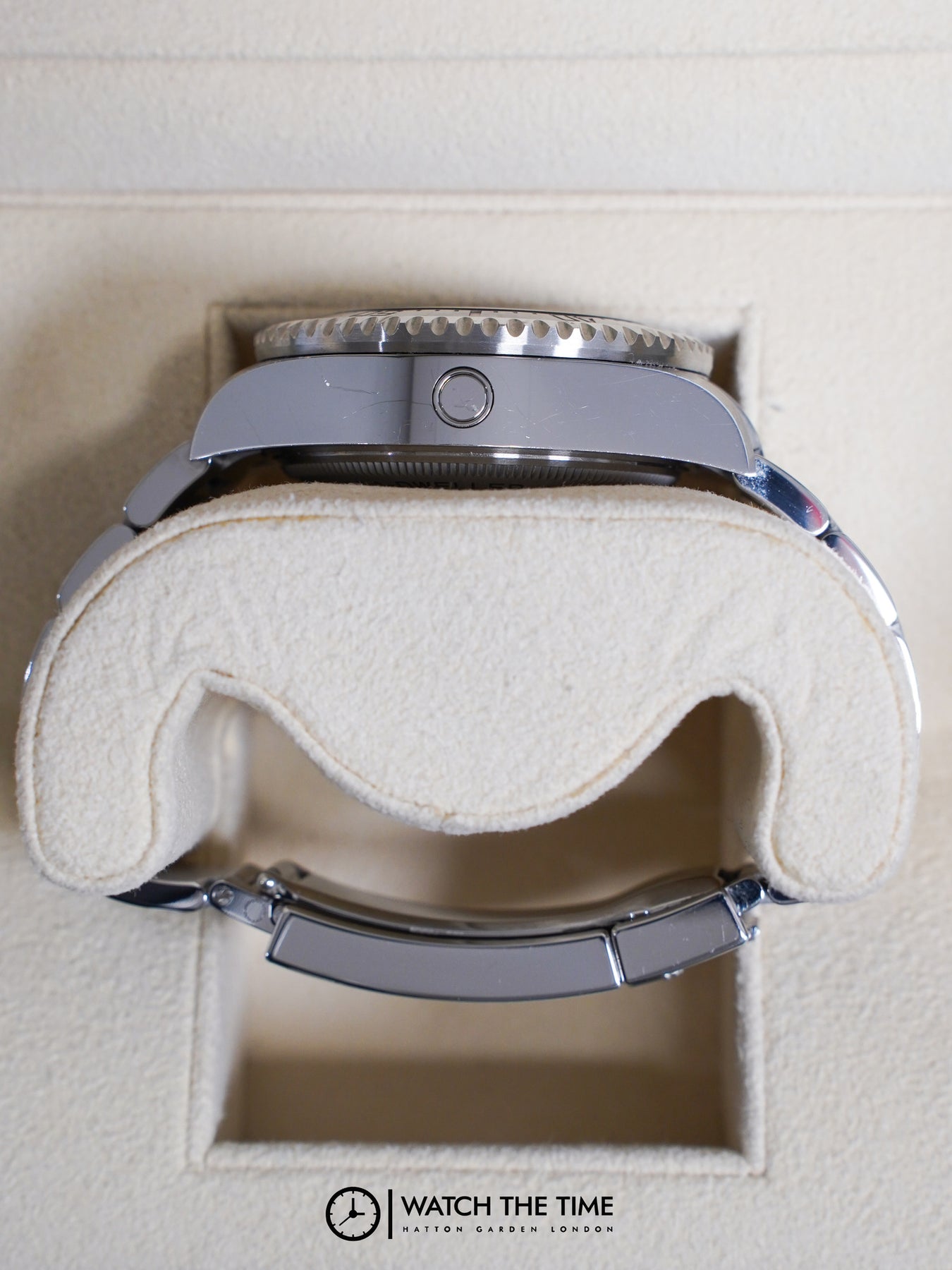 44mm Stainless Steel Case, Ceramic Bezel, Crown Set On The Right Side As Well As The Date. Independent 12 hour Hand, Blue Dial, Stainless Steel Oyster Bracelet.
