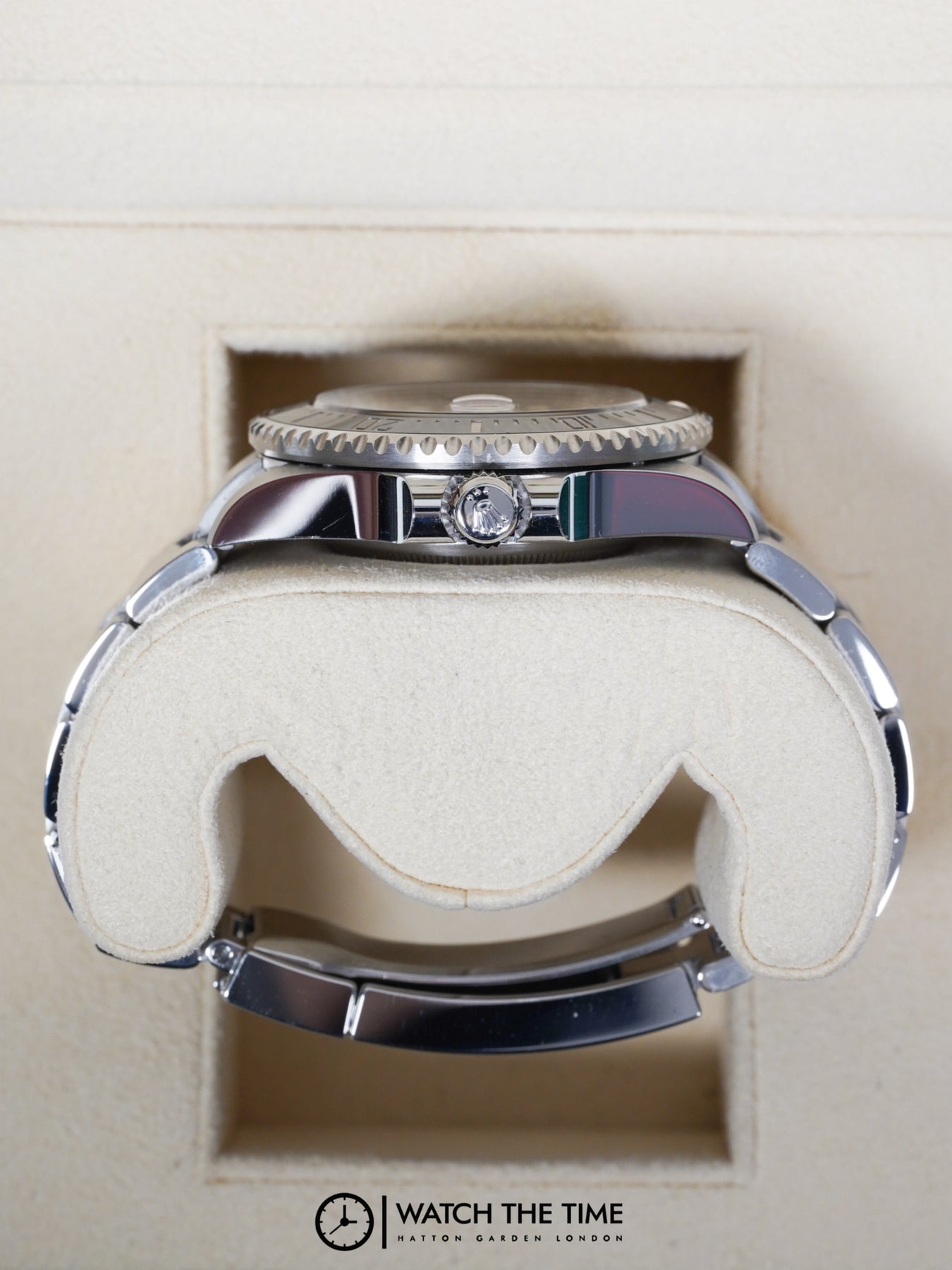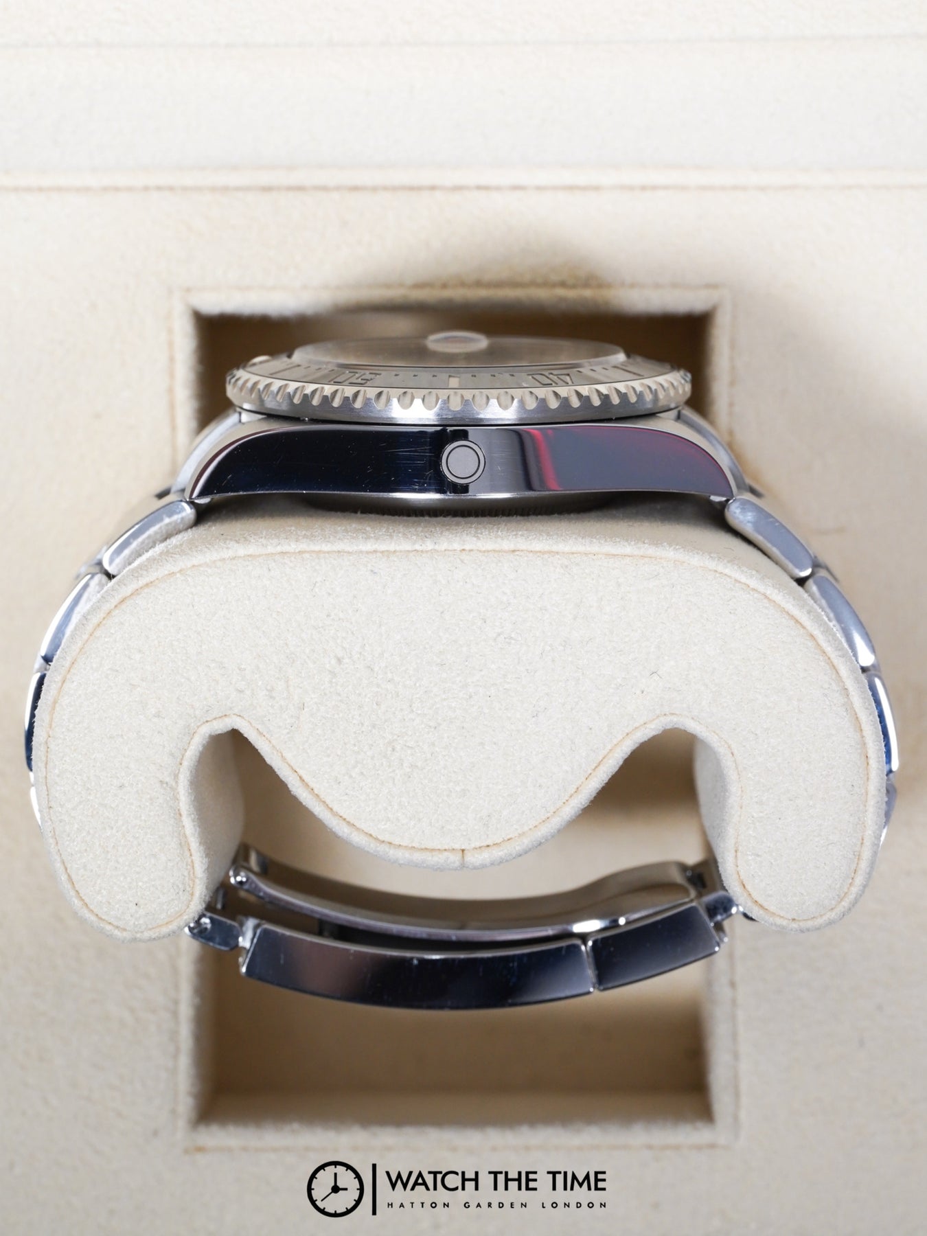 43mm Stainless Steel Case, Ceramic Bezel, Crown Set On The Right Side As Well As The Date. Independent 12 hour Hand, Black Red Writing Dial, Stainless Steel Oyster Bracelet.