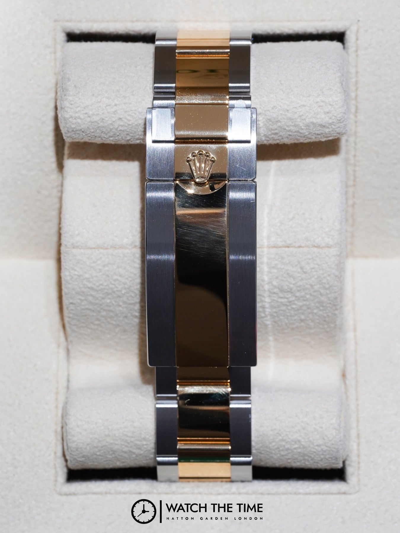 41mm Stainless Steel & Yellow Gold Case, Blue Ceramic Bezel, Crown Set On The Right Side Of The Watch As Well As The Date. Blue Dial, Stainless Steel & Yellow Gold Oyster Bracelet.