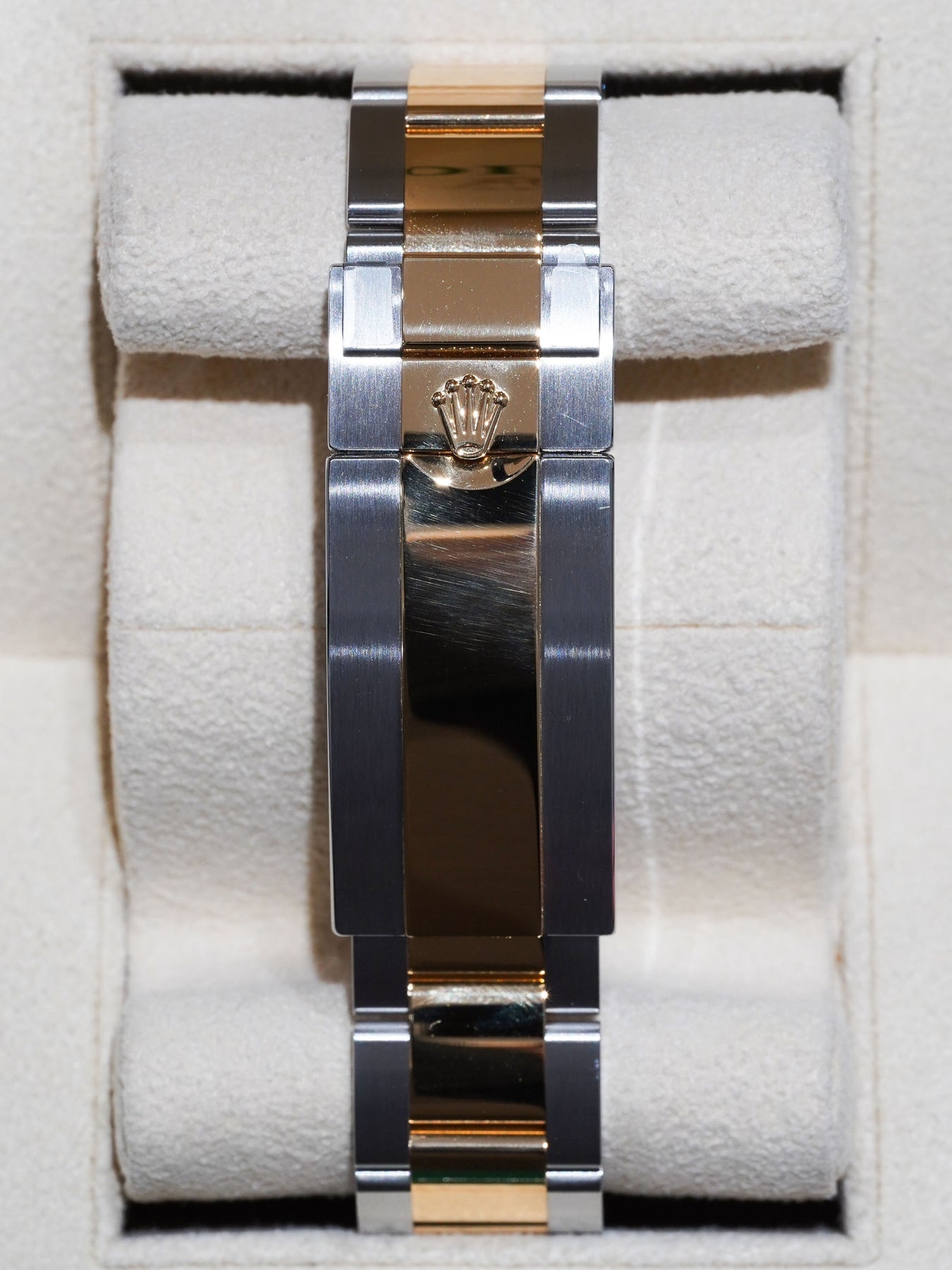 41mm stainless steel & yellow gold case, blue ceramic bezel. Crown set on the right side of the watch as well as the date. Blue dial, stainless steel & yellow gold oyster bracelet.